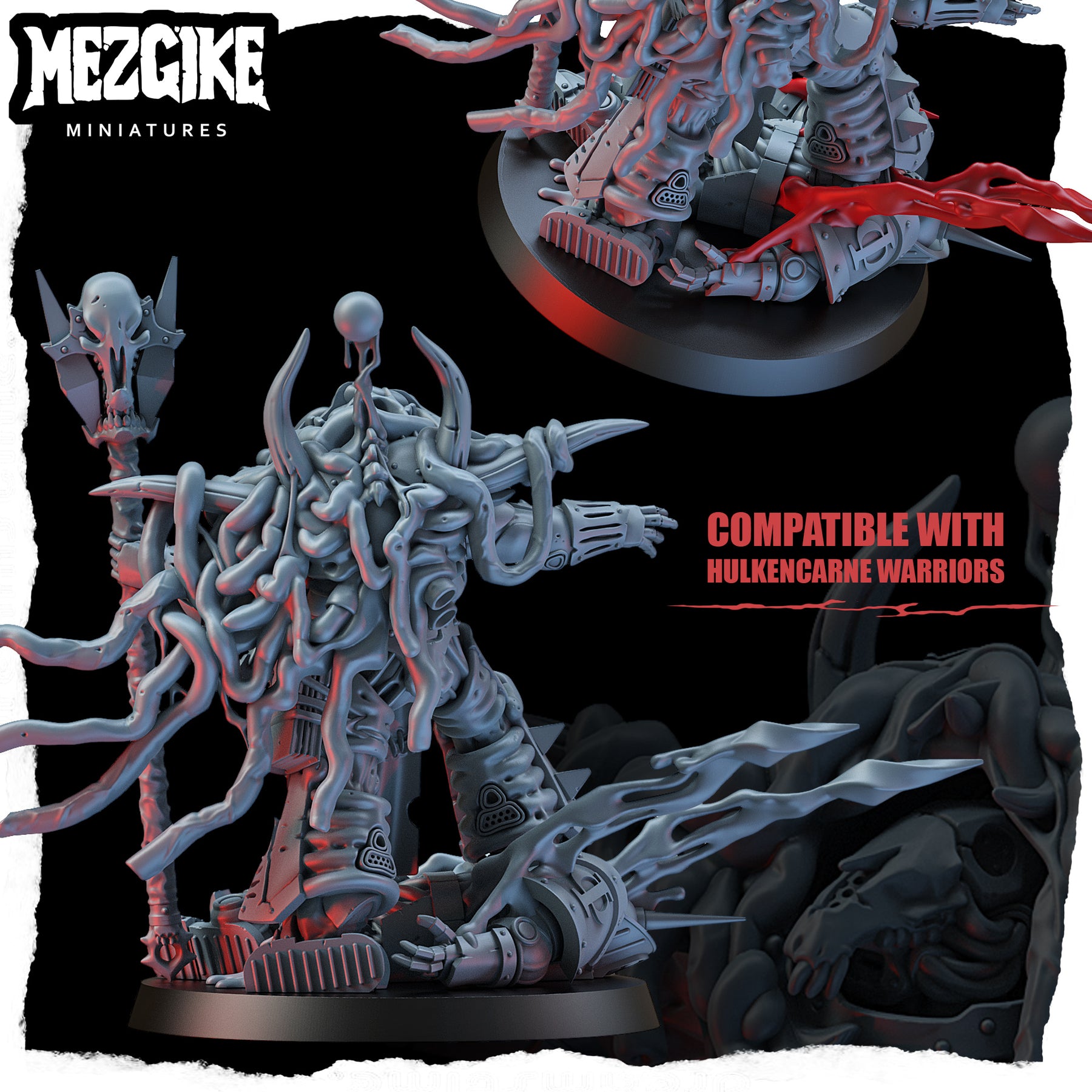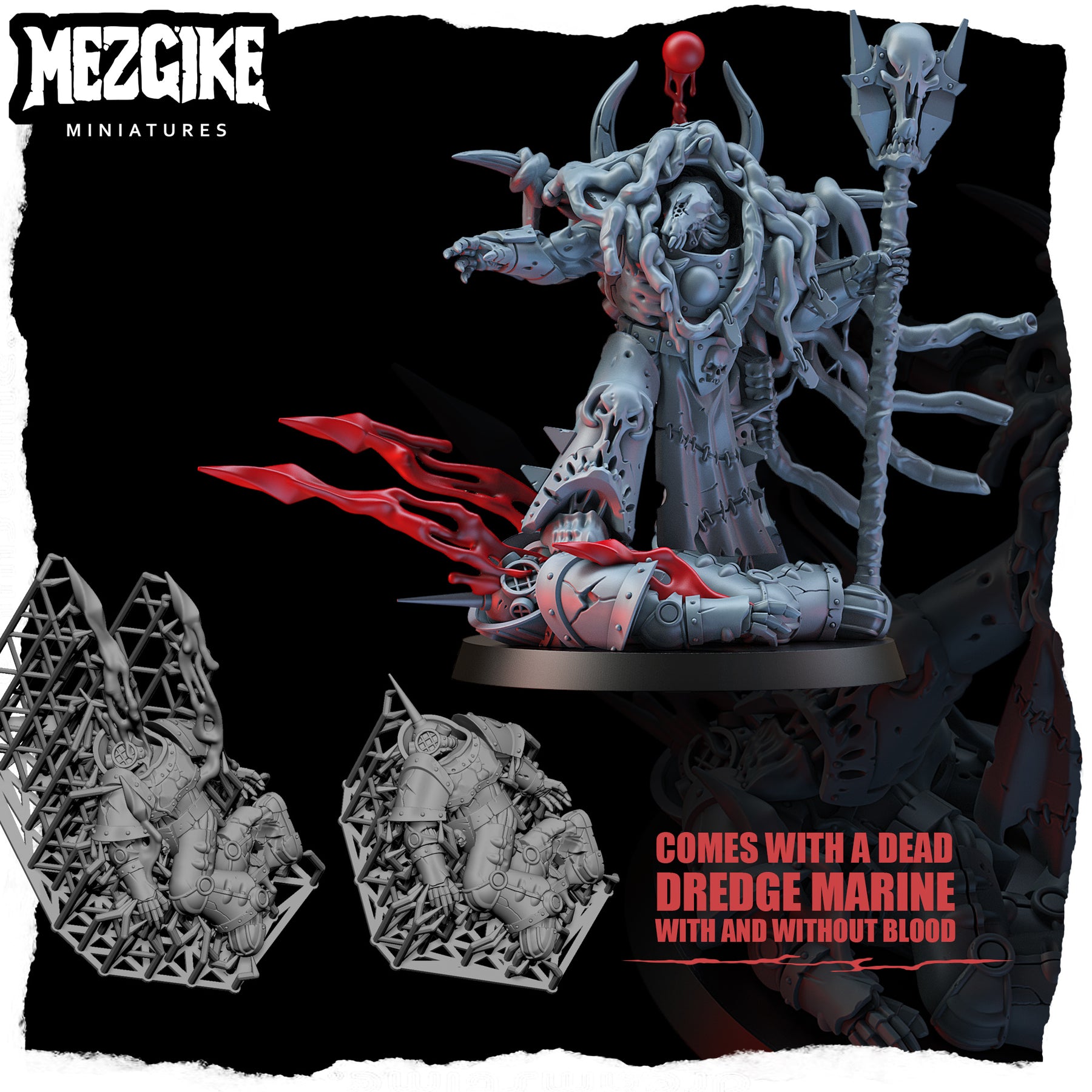 This set features a poor Dredgemarine lying lifeless on the base, his blood drawn from the cracks in his defeated armour and spiraling into piercing darts. There is also be a non-blooded dredge marine, allowing you to use him as a fallen brother in your dredge armies. The Hulkencarne Sorcerer is a multipart set that is completely compatible with the Hulkencaren Guard - a full squad of multipart heavy Fleshbound elites. All arms, torso, legs and head are interchangeable.
